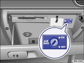 Abb. 73 Im Ablagefach auf der Beifahrerseite: Schlüsselschalter zum Ab- und Einschalten des Beifahrer-Frontairbags.