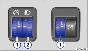 Die Helligkeit der Instrumenten- und Schalterbeleuchtung lässt sich durch Drehen des Reglers ⇒ Abb. 85① stufenlos regulieren.