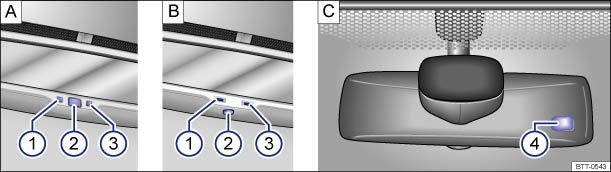 Abb. 94 An der Frontscheibe: Automatisch abblendender Innenspiegel.