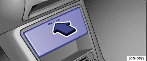Zum Öffnen die Taste in Pfeilrichtung ⇒ Abb. 117 drücken und loslassen. Das Ablagefach öffnet sich selbsttätig.