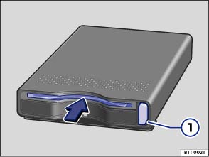 Navigationssystem einschalten und geeignete ETC-Karte in den Mautkartenleser ⇒ Abb. 138 in Pfeilrichtung einstecken.