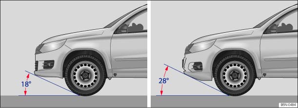 Abb. 188 Übersicht: Fahrzeug mit Standard-Front (18° Böschungswinkel) und mit Offroad-Front (28° Böschungswinkel).