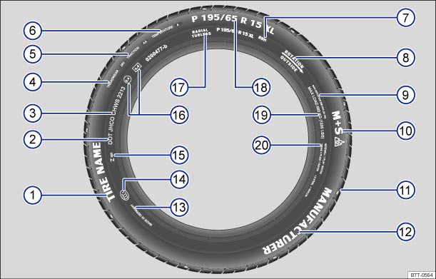 zum Thema | ⇒ Abb. 209 | Reifenbeschriftung (Beispiel) | Bedeutung | |