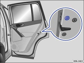 Abb. 220 In der Stirnseite der hinteren rechten Tür: Notverriegelung, durch eine Gummidichtung abgedeckt.