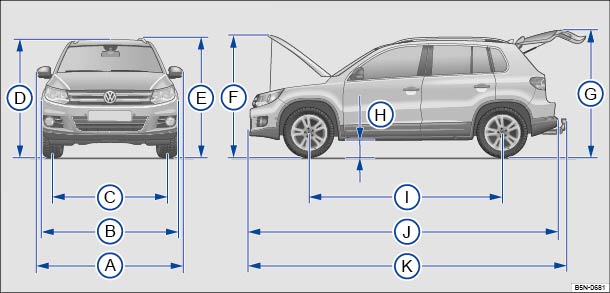 | Ⓖ | Höhe bei geöffneter Gepäckraumklappe und Leergewichta) | 2043 mm |