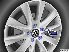 Abb. 231 Abdeckkappen von den Radschrauben abziehen.