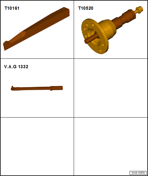 Wenn sich die Gelenkwelle nicht aus dem Radlager herausziehen lässt, dann kann die Gelenkwelle mit dem Ausdrücker -T10520- aus dem Radlager gedrückt werden.