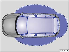 Abb. 29 Schlüsselloses Schließ- und Startsystem Keyless Access: Näherungsbereiche.
