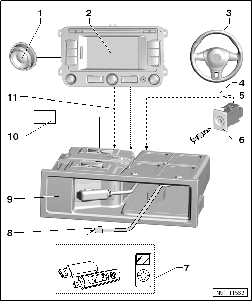 Da die Anzeigefähigkeit von ID3-Tags und Titeln auf dem Display des Radios bzw. des Radio-Navigationssystems von der "Beschaffenheit" der verwendeten Audiodateien abhängig ist, beachten Sie hierzu bitte auch die → Betriebsanleitung des Radios bzw. des Radio-Navigationssystems sowie die → Betriebsanleitung ihres MP3-Players bzw. iPods.