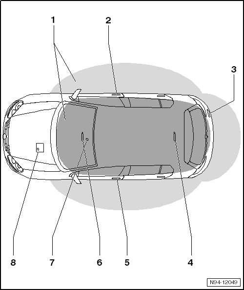 Alle Funktionen für Zugang und Startberechtigung werden über das Steuergerät für Zugang und Startberechtigung -J518- gesteuert.