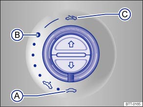 Zum Ausstellen des Glasdachs muss sich der Drehschalter in Stellung ⇒ Abb. 38Ⓐ befinden.