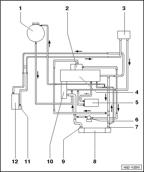 Nach dem Entlüften und Befüllen des Kühlmittelkreislaufs ist die Stand-/Zusatzheizung und die Umwälzpumpe -V55- wie unten beschrieben nachzuentlüften.Kühlmittelkreislauf der Stand-/Zusatzheizung entlüften.